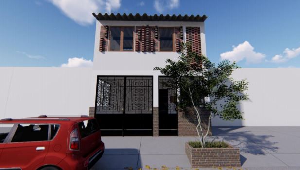 La fachada del segundo nivel de la vivienda comprometía ciertas limitaciones, ya que debía llevar el mismo lenguaje del primer nivel. Se pensó en mantener la identidad de la fachaleta en ladrillo a la vista que mantenía en el primer nivel, pero con una celosía que aportara iluminación y ventilación de carácter natural en la circulación y la escalera que conllevaba al segundo piso de los apartamentos. También, en la siguiente fracción de su fachada, la acompañaba una superposición en ladrillo a la vista en las ventanas, con la intención de que generaran un juego de sombras y a su vez actuara como limitante, para el paso directo del sol en todo el frontis principal. El diseño arquitectónico y estéticofuncional le aporta a la vivienda “identidad y pertenencia” con los materiales sin ninguna afección necesaria, a la vista.